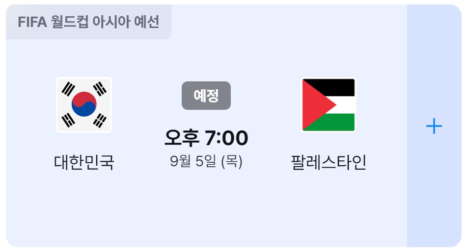 9월 5일 팔레스타인전을 시작으로 오만, 요르단, 이라크와 쿠웨이트까지 월드컵 아시아 3차예선 경기가 줄줄이 있습니다. 2026 북중미 월드컵 3차 예선 경기 일정 정보는 아래 버튼을 통해서 확인해 주세요.