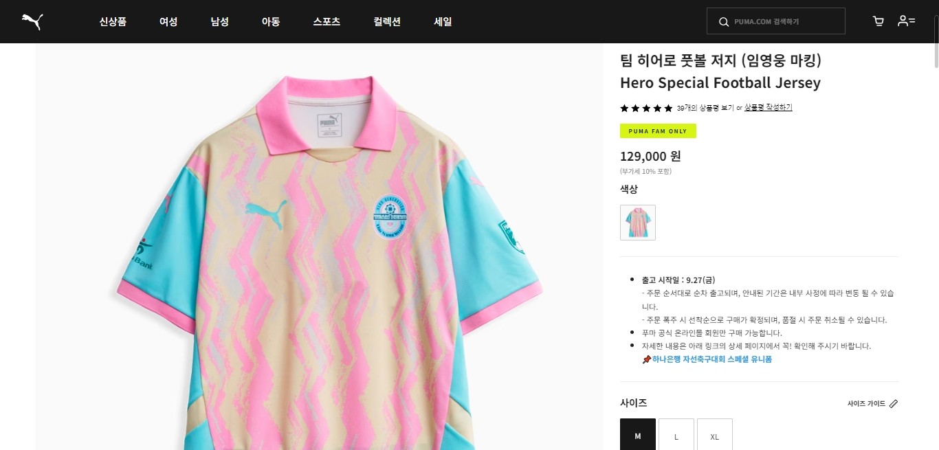 1. 푸마 공식 온라인몰에서 논마킹 유니폼 (팀 히어로 풋볼 저지 논마킹 / 캡틴 키 풋볼 저지 논마킹)을 구매합니다.