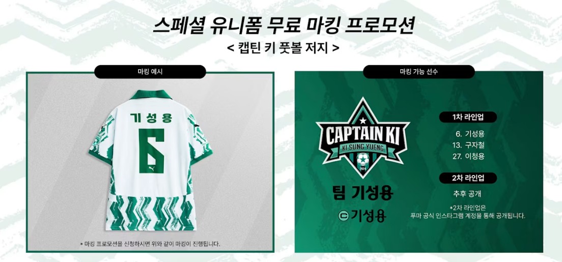 팀 기성용의 스페셜 유니폼은 한가지 옵션입니다.