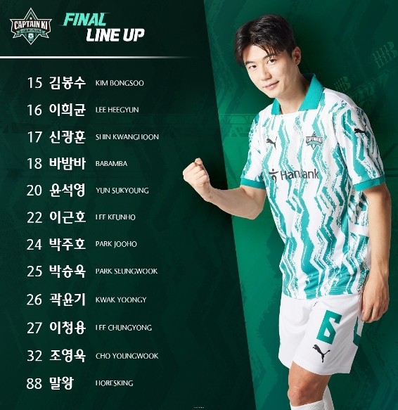 팀 히어로와 팀 기성용의 최종 라인업을 발표하였습니다. 승리의 팀은 과연 누구가 될 수 있을까요?