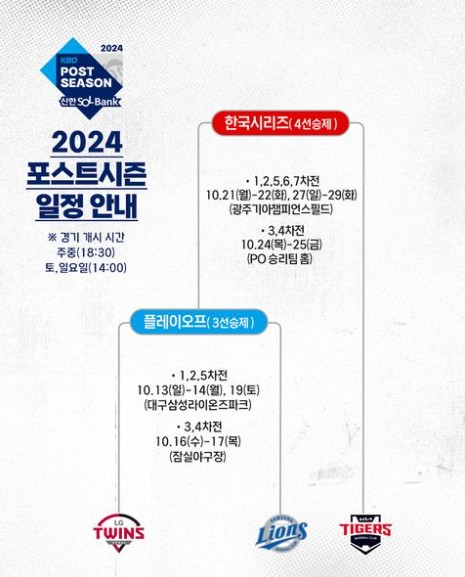 2024 포스트시즌 경기 일정 / 플레이오프 한국시리즈