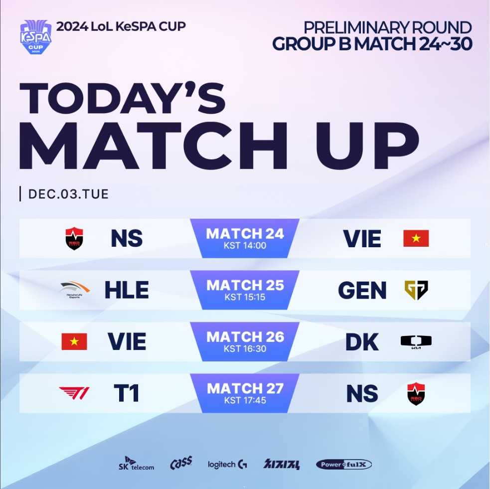 12월 3일 경기 일정 12.03. KeSPA CUP SCHEDULE