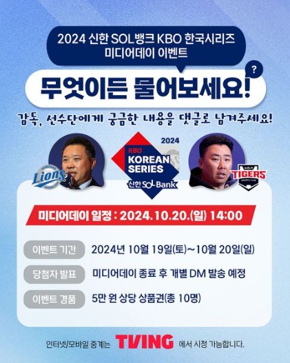 2024 KBO 한국시리즈 미디어데이가 10월 20일 오후 2시 개최됩니다.