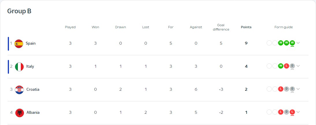 유로 2024 조별리그 결과